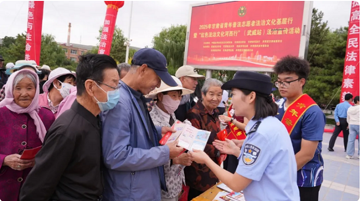 由中国法学会法治文化研究会、甘肃省法学会、甘肃省司法厅、共青团甘肃省委共同主办,为期10天的2025年甘肃省青年普法志愿者法治文化基层行暨红色法治文化“河西行”于9月7日拉开帷幕。通过宣传海报、情景音乐剧、法治讲座等群众喜闻乐见的形式,让法治文化播撒河西走廊,让法治之光照进千家万户……