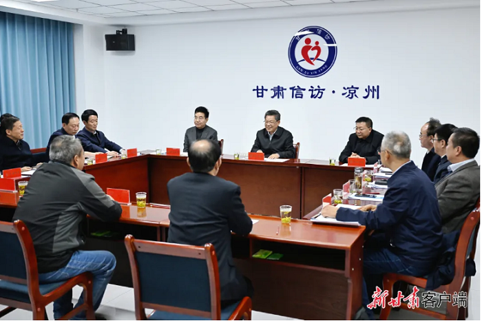 在凉州区信访局,任振鹤面对面接待凉州区发放镇贾家墩村3名来访群众,详细听取他们关于征地拆迁安置政策长期未能落实的诉求,与省直相关部门、地方党委政府及有关企业现场研究,给出明确解决办法和解决时限。