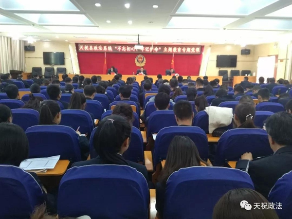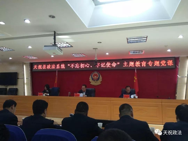 当前,“不忘初心、牢记使命”主题教育已进入关键时期。全县政法系统将按照县委统一部署,不空不虚,不走形式,把各项规定动作做到位,及时跟进学习、联系工作实际学习;结合主题教育,深入推进平安天祝建设,推动政法领域全面深化改革,加强过硬队伍建设,深化智能化建设,严格执法、公正司法,履行好维护国家政治安全、确保社会大局稳定、促进社会公平正义、保障人民安居乐业的主要职责,创造安全的政治环境、稳定的社会环境、公正的法治环境、优质的服务环境,增强人民群众获得感、幸福感、安全感。