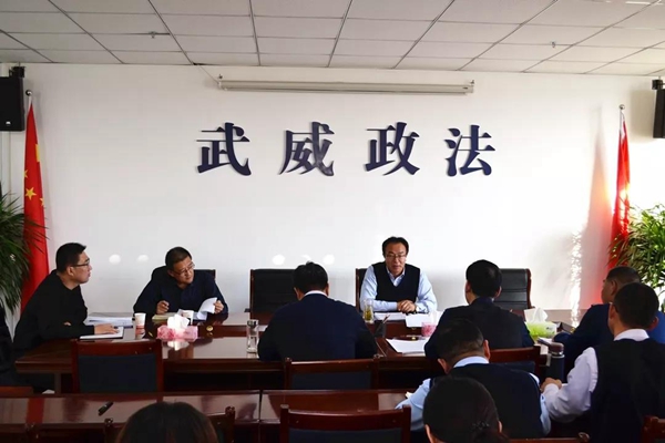 11月13日,武威市委政法委召开理论学习中心组学习(扩大)会议暨“不忘初心、牢记使命”主题教育推进会议,市委常委、市委政法委书记关维斌主持会议并讲话,市委主题教育第八巡回指导组到会指导。会议认真传达学习了党的十九届四中全会精神,领导班子成员分别围绕学习贯彻十九届四中全会精神,结合各自分管工作进行了专题学习研讨发言。